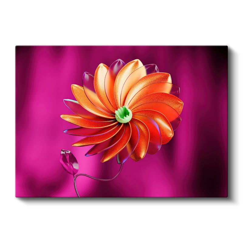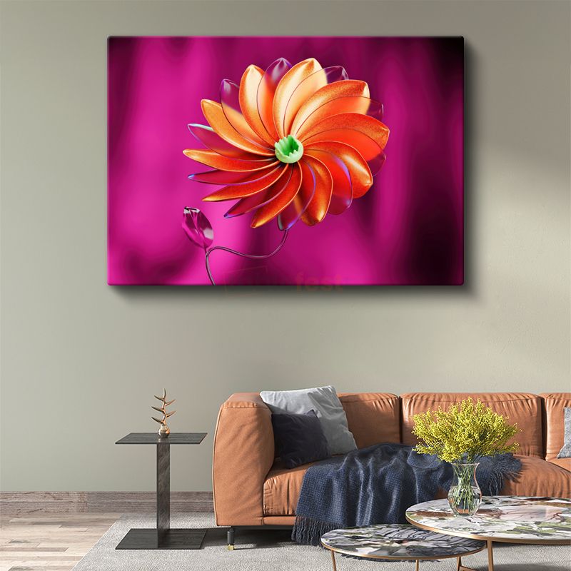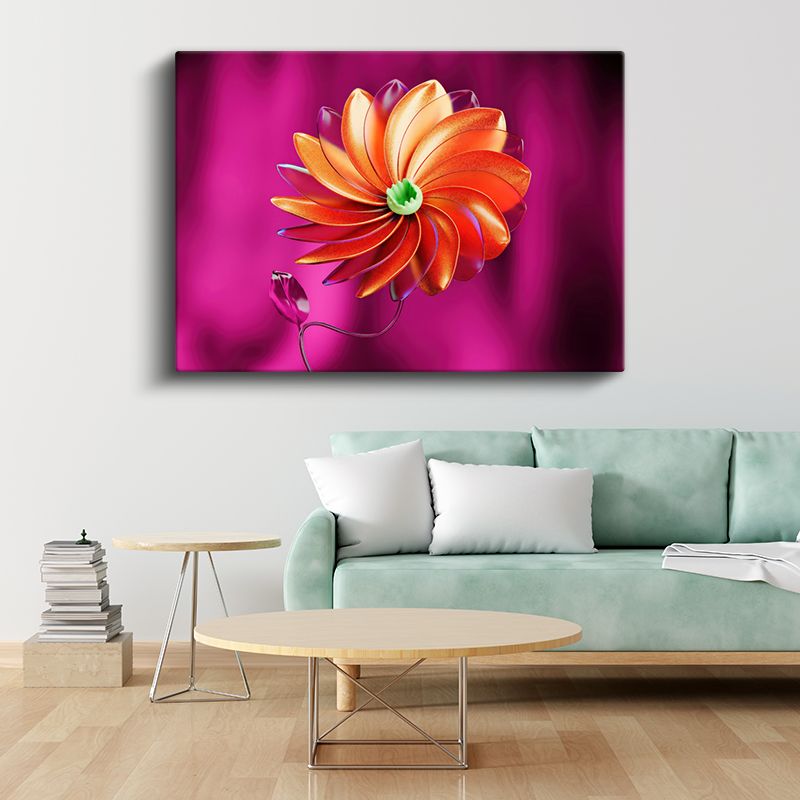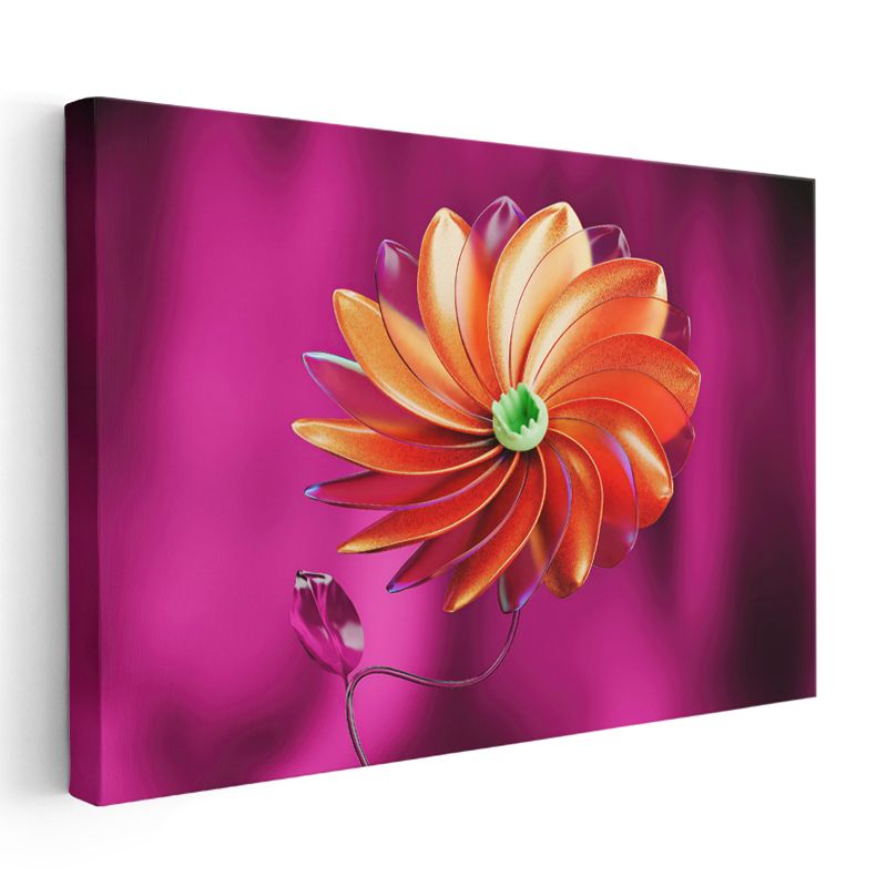 Turuncu Spiral - Fuşya Zeminde 3D Çiçek Formu Kanvas Tablo