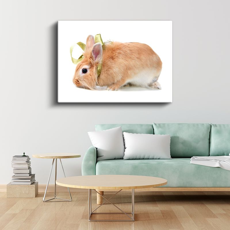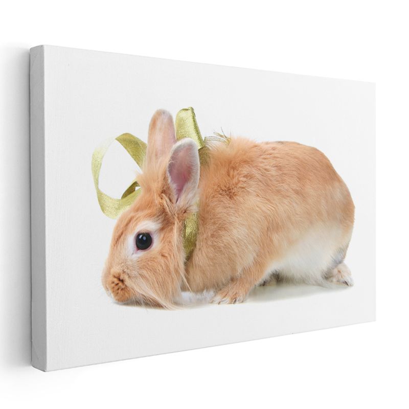 Turuncu Tavşan - Altın Kurdeleli Profil Portresi Kanvas Tablo