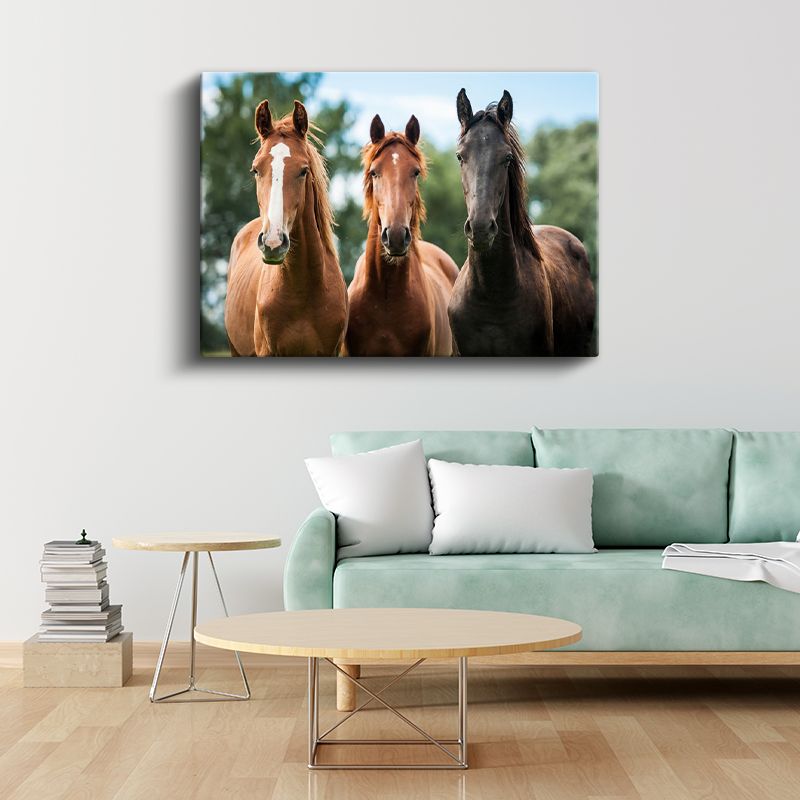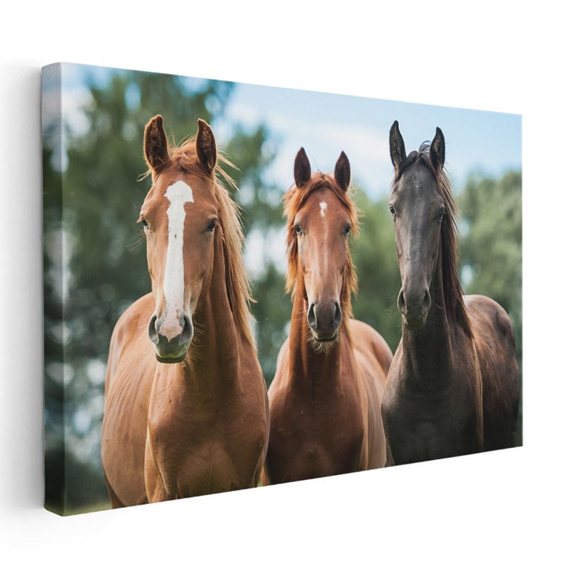 Üç Muhteşem At - Farklı Renklerde Asil Duruş Kanvas Tablo