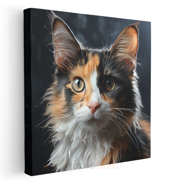Üç Renkli Kedi Portresi - Derin Bakışların Gerçekçi Yansıması Kanvas Tablo