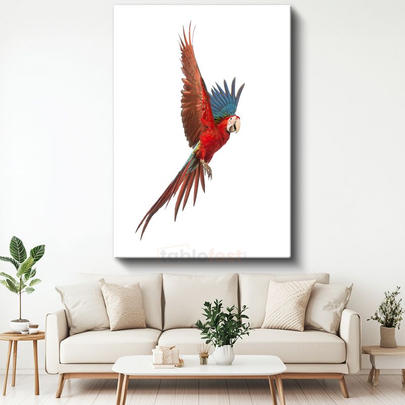 Uçan Ara Papağanı - Kanatları Açık Kırmızı İhtişam Kanvas Tablo