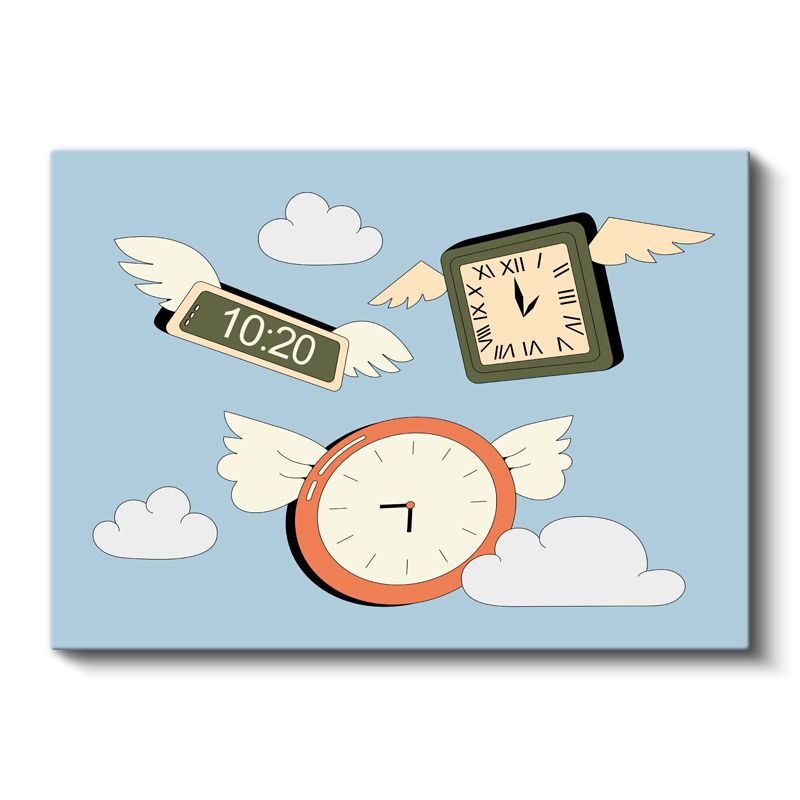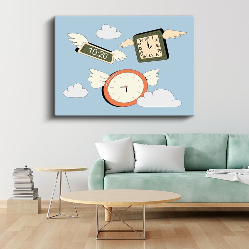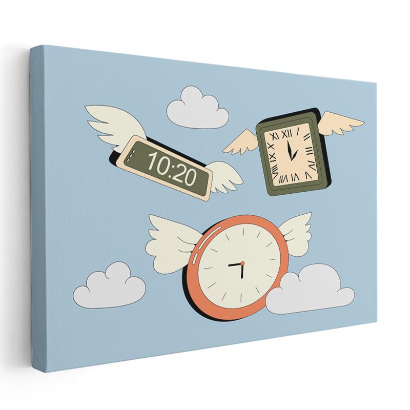 Uçan Saatler - Kanatlanmış Zaman Parçaları Kanvas Tablo