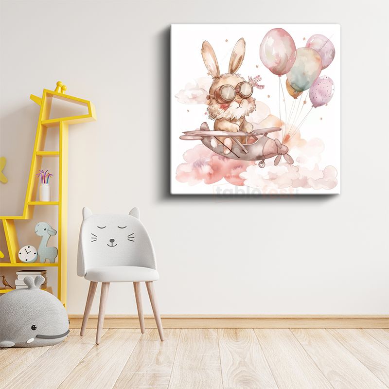 Uçan Tavşan - Balonlu Gökyüzü Macerası Kanvas Tablo