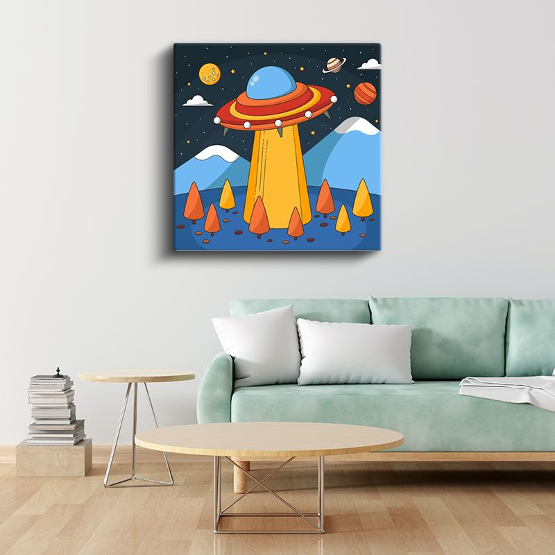 UFO Macerası - Renkli Uzay Gemisi Kanvas Tablo