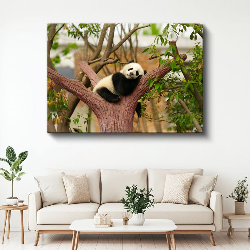 Uyuyan Panda - Ağaç Dalında Tatlı Mola Kanvas Tablo