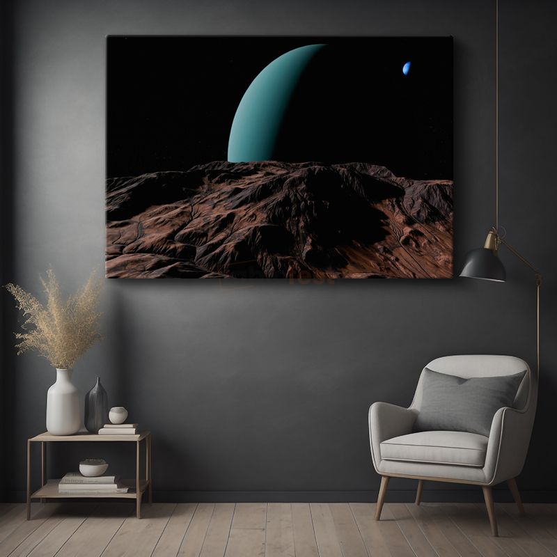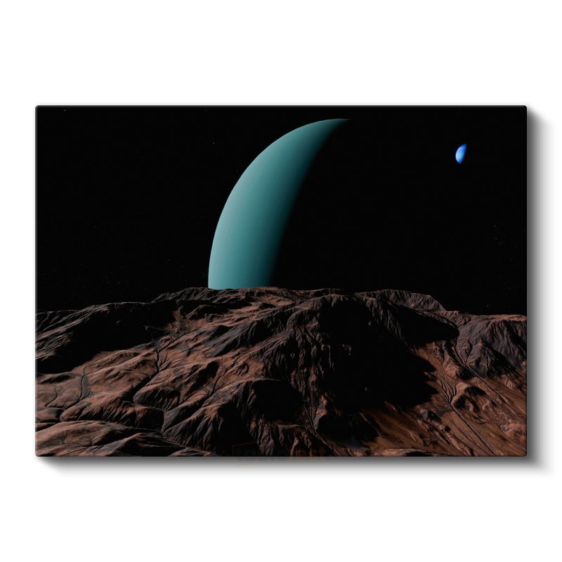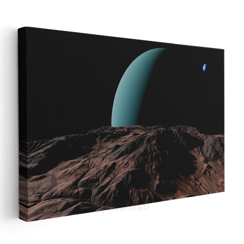 Uzak Dünyalar - Turkuaz Gezegen ve Kayalık Yüzey Kanvas Tablo