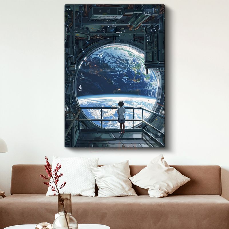 Uzay İstasyonu - Dünya Manzarası Anime Kanvas Tablo