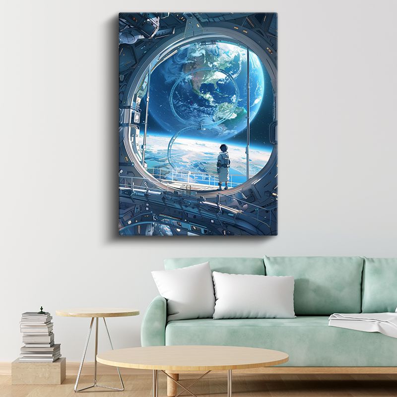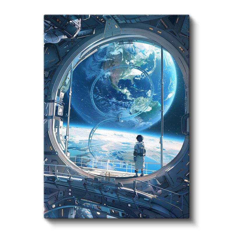 Uzay İstasyonu - Dünya Manzarası Anime Kanvas Tablo