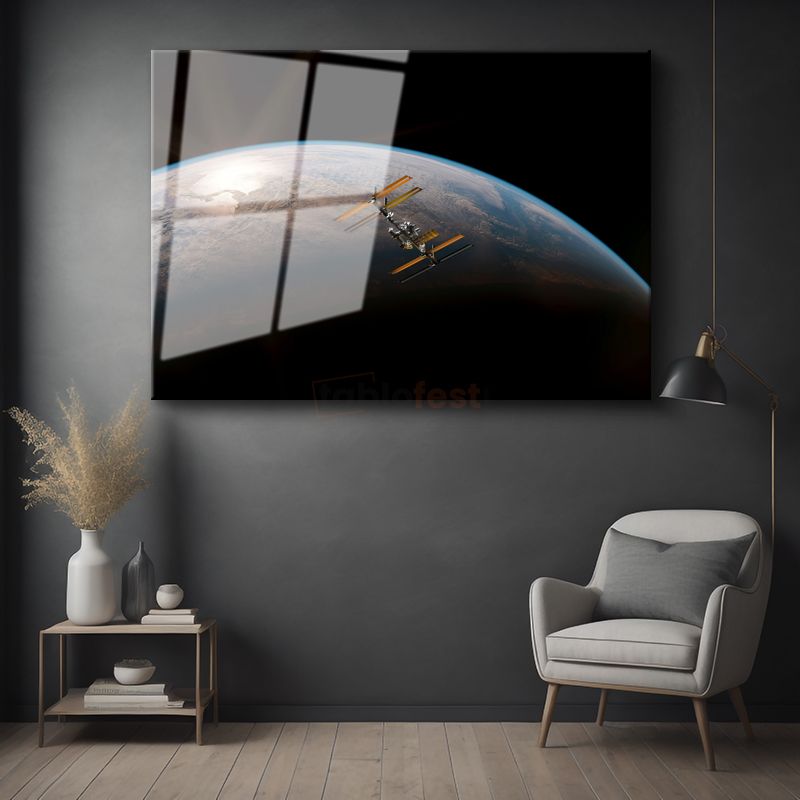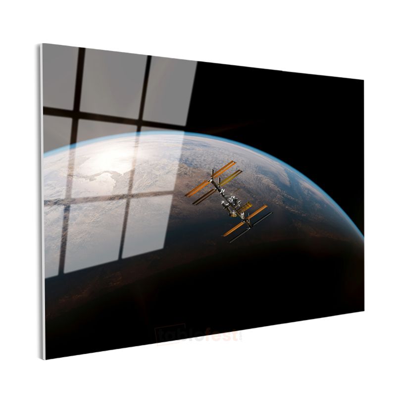 Uzay İstasyonu - Dünya Yörüngesinde Muhteşem Görünüm Cam Tablo