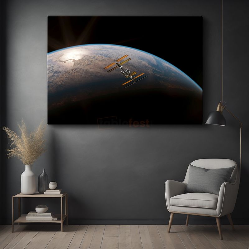 Uzay İstasyonu - Dünya Yörüngesinde Muhteşem Görünüm Kanvas Tablo