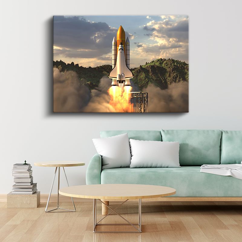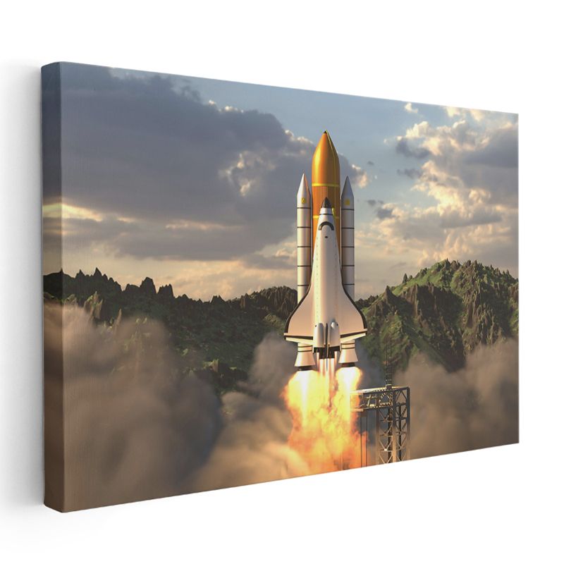 Uzay Mekiği - Dağlar Üzerinde Yükseliş Kanvas Tablo