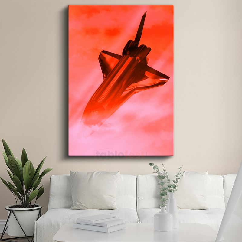 Uzay Mekiği - Kızıl Gökyüzünde Yükselen Mekik Kanvas Tablo