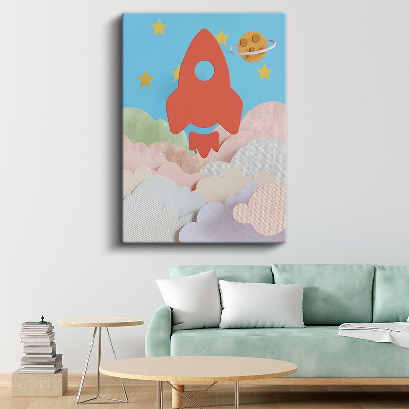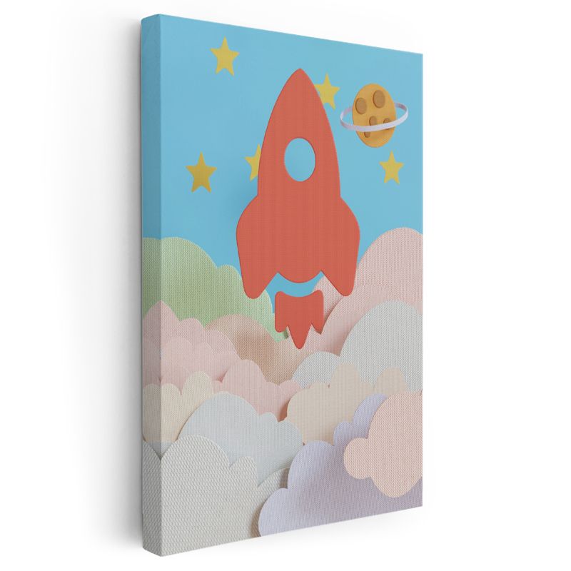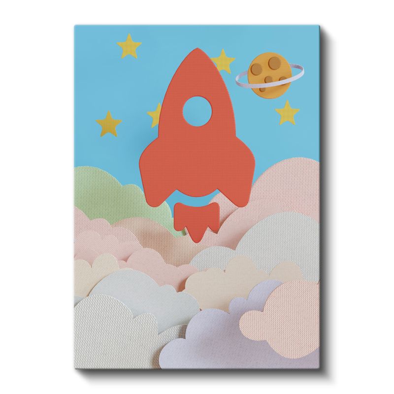Uzay Roketi - Bulutlar Arasında Heyecanlı Yolculuk Kanvas Tablo