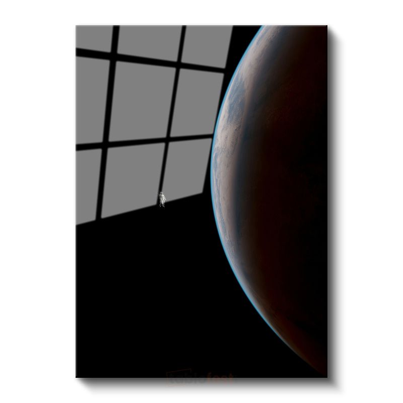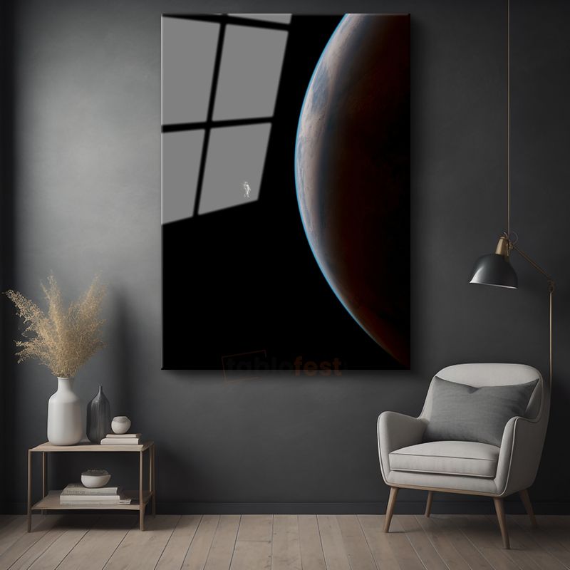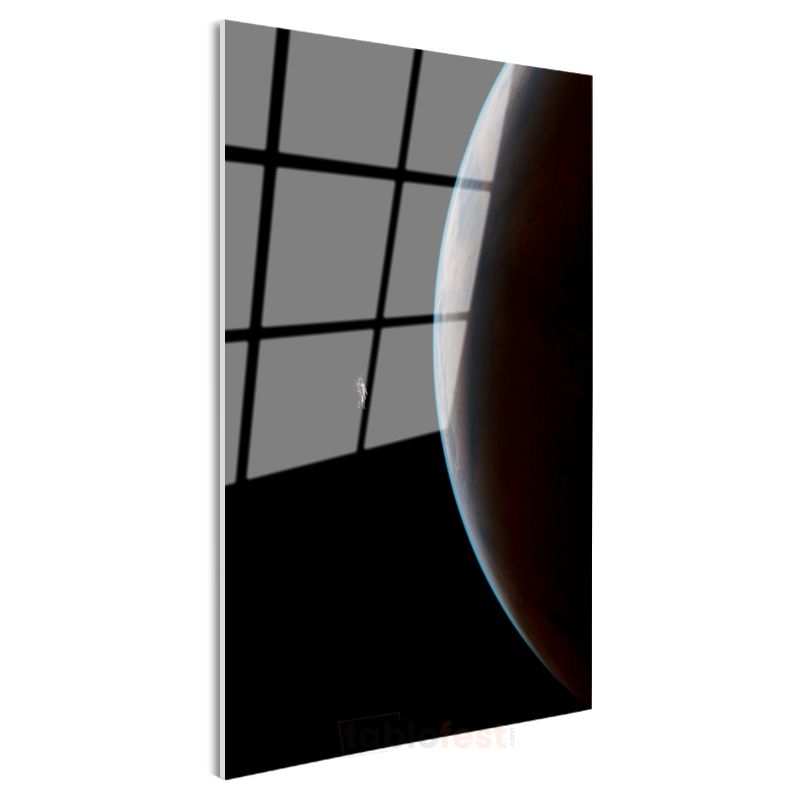 Uzay Yolculuğu - Gezegen Manzarasında Astronot Silueti Cam Tablo