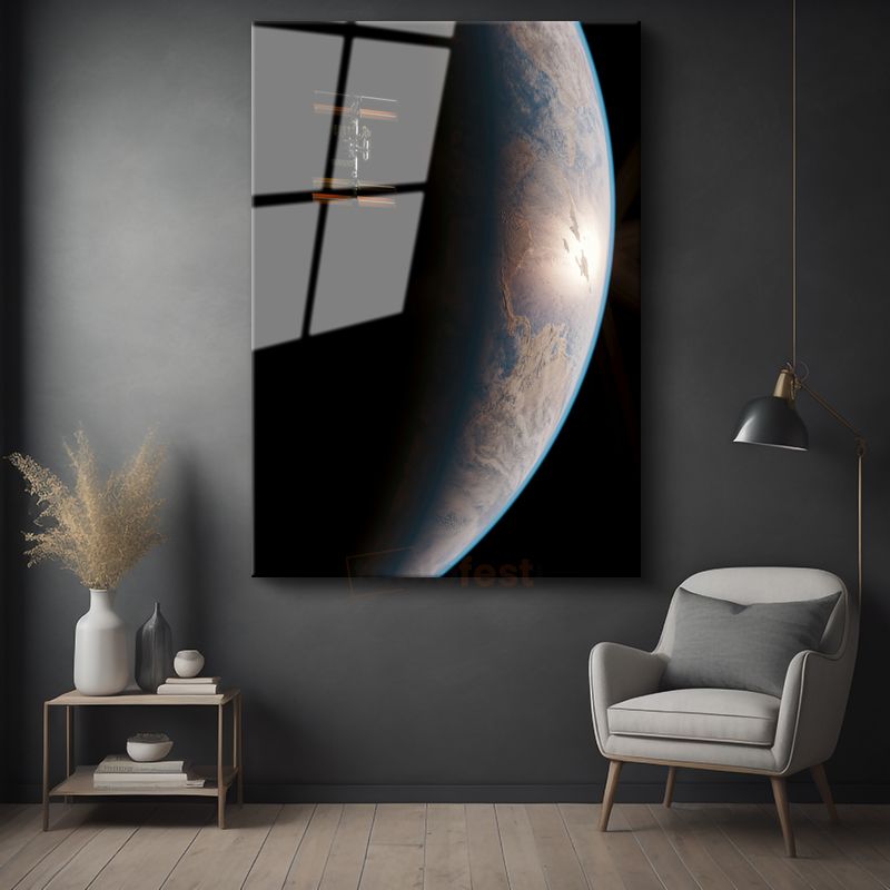 Uzaydan Dünya - Mavi Gezegenimiz Cam Tablo