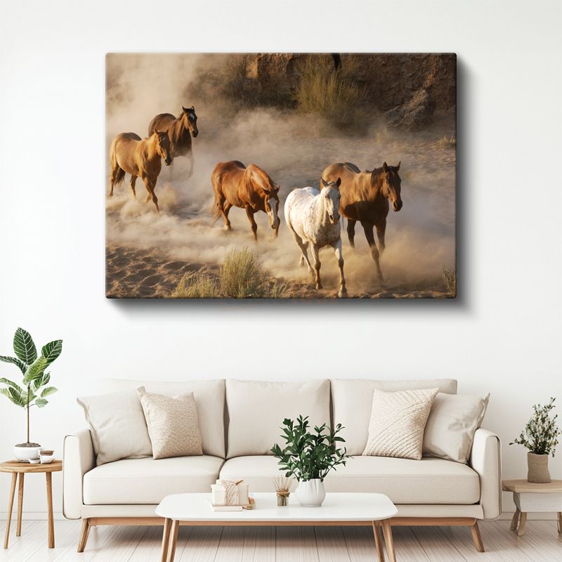 Vahşi Atlar - Tozlu Ovada Özgürce Koşan Sürü Kanvas Tablo