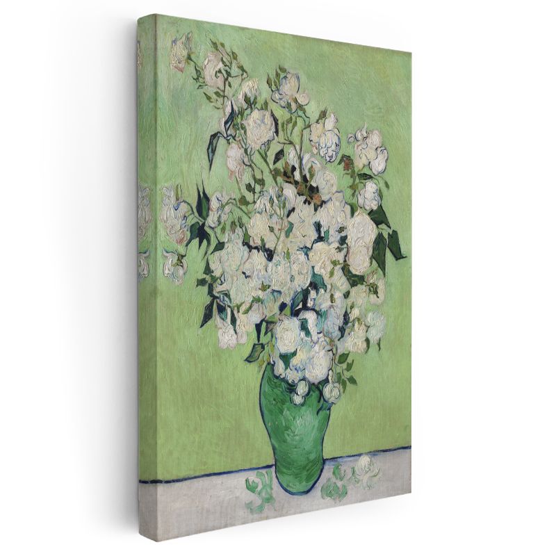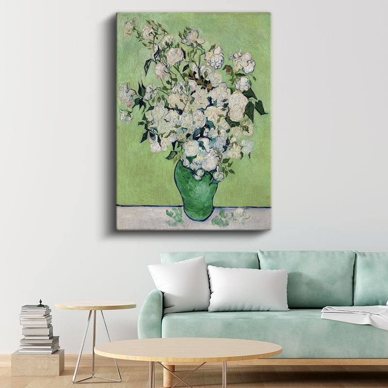 Van Gogh Gülleri - Yeşil Vazoda Beyaz Çiçekler Kanvas Tablo