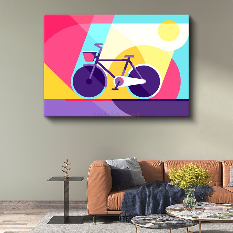 Vektörel Bisiklet - Canlı Renkli Geometrik Tasarım Kanvas Tablo