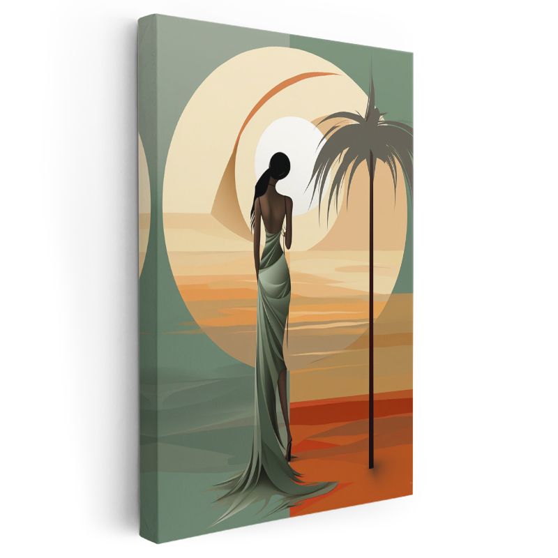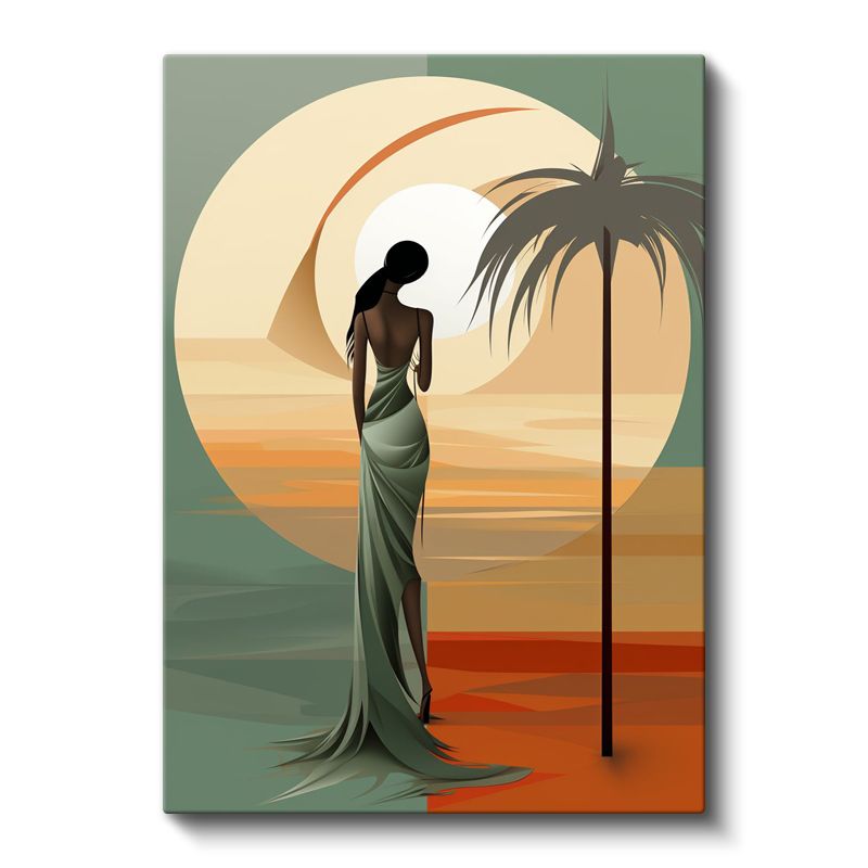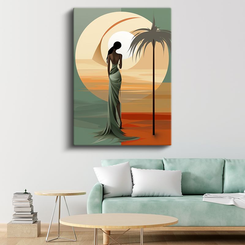 Vektörel Siluet - Tropikal Gün Batımı Kanvas Tablo