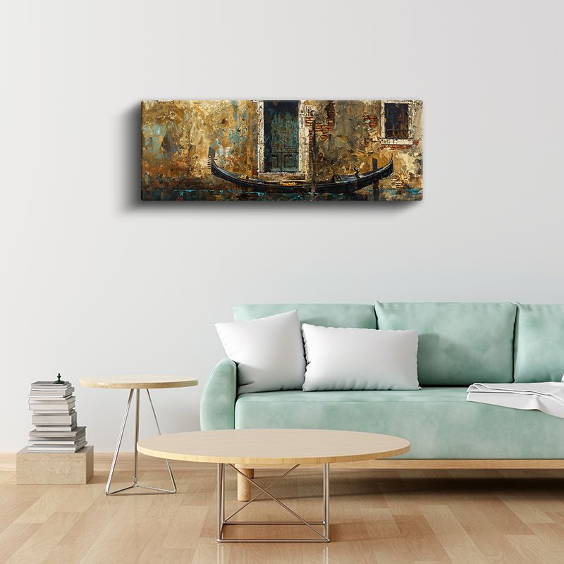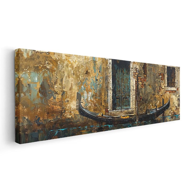 Venedik Gondolu - Eskitilmiş Duvar Dokusu Kanvas Tablo