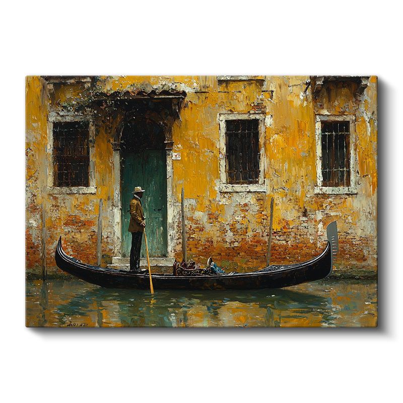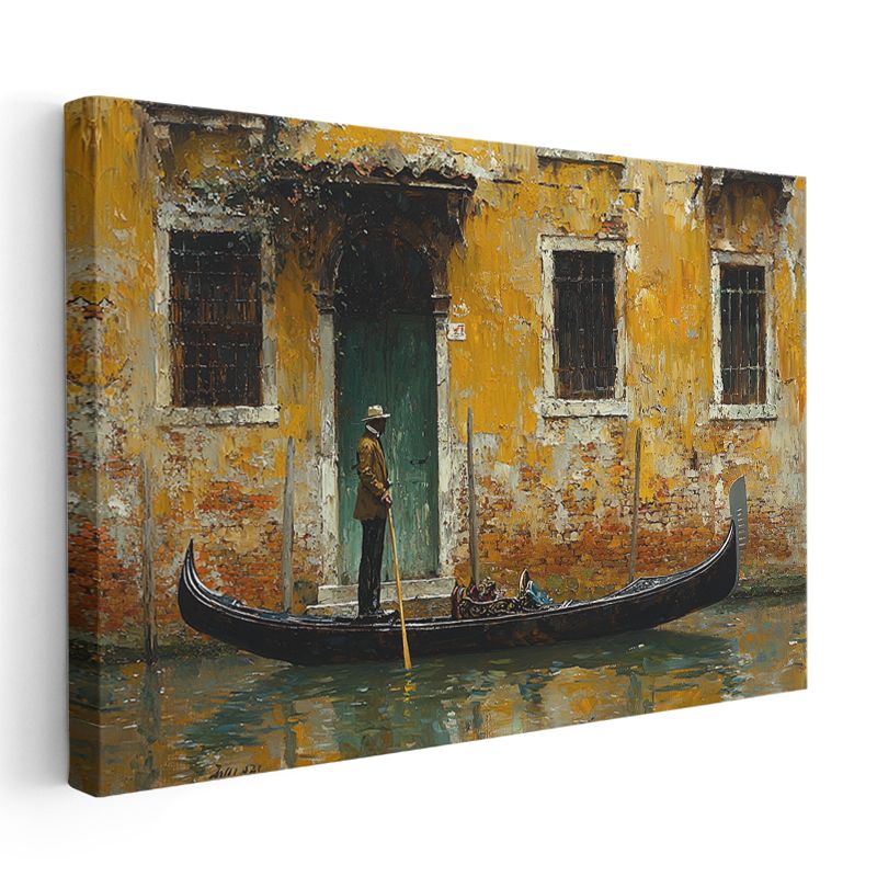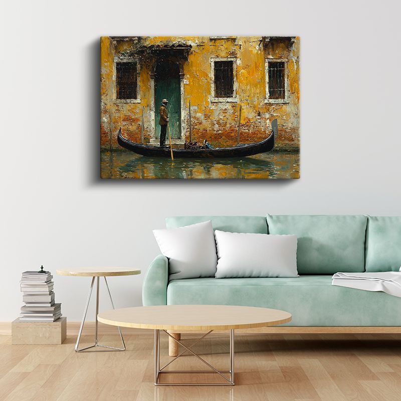 Venedik Gondolu - Tarihi Sarı Bina Önünde Kanvas Tablo