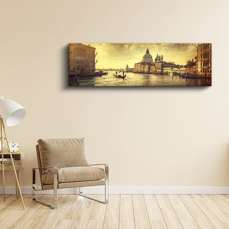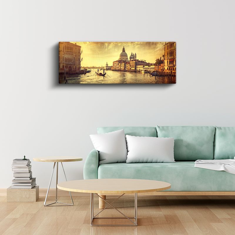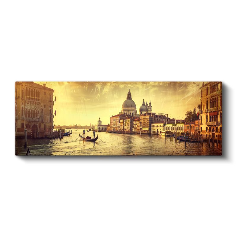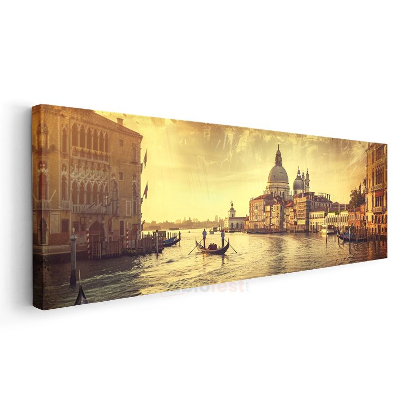 Venedik Kanalı - Altın Işıklı Gondol Yolculuğu Kanvas Tablo