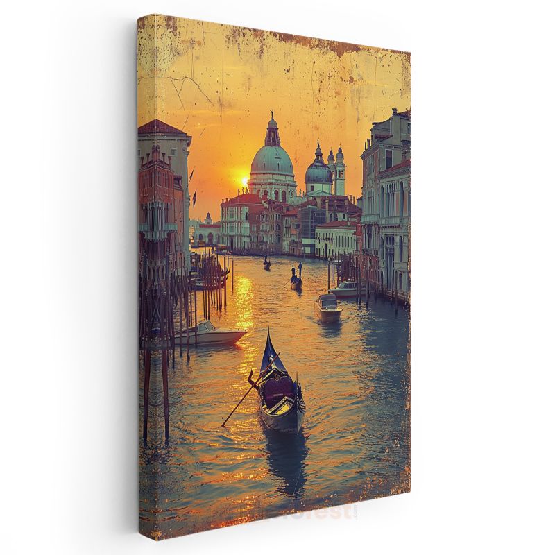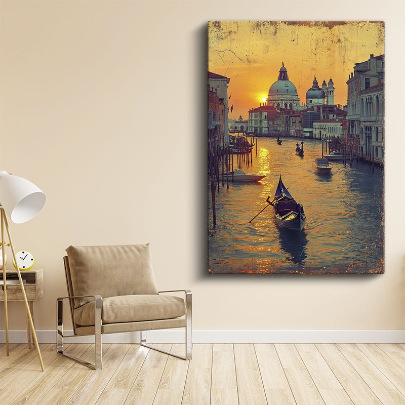 Venedik Kanalları - Altın Gün Batımında Gondollar Kanvas Tablo