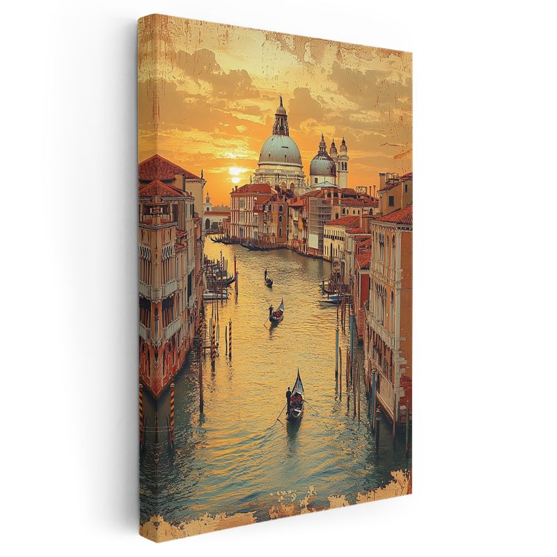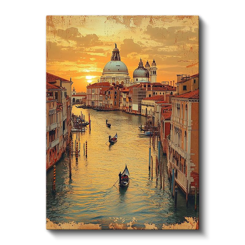 Venedik Kanalları - Altın Saatler Kanvas Tablo