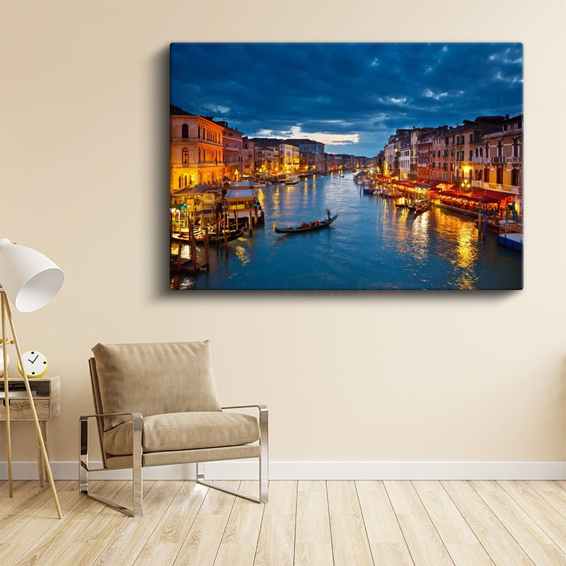 Venedik Kanalları - Gece Işıkları Kanvas Tablo