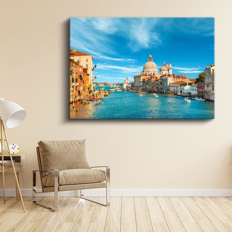 Venedik Kanalları - Tarihi Bazilika Manzarası Kanvas Tablo