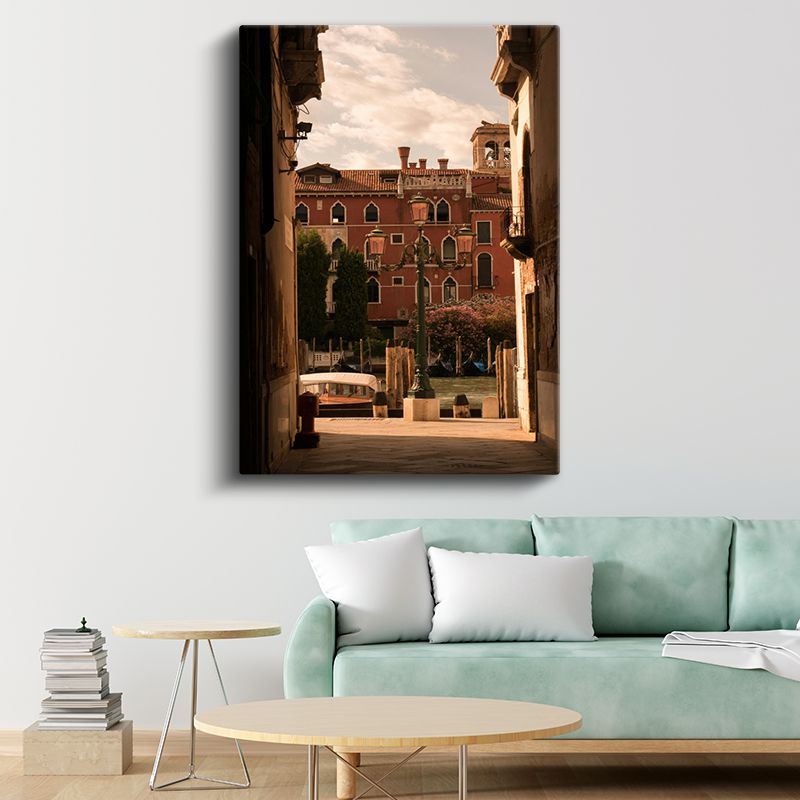 Venedik Sokağı - Kırmızı Saray ve Kanal Manzarası Kanvas Tablo