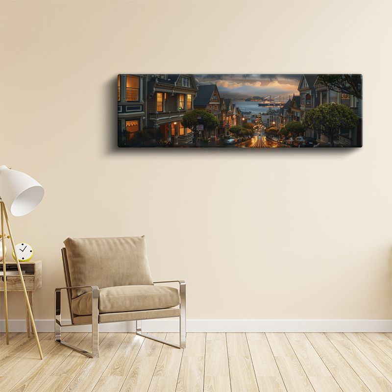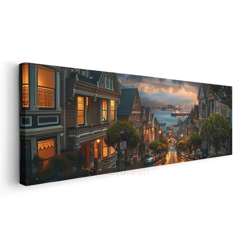 Viktoryen Evler - Akşam Işıklarında San Francisco Kanvas Tablo
