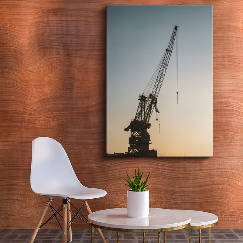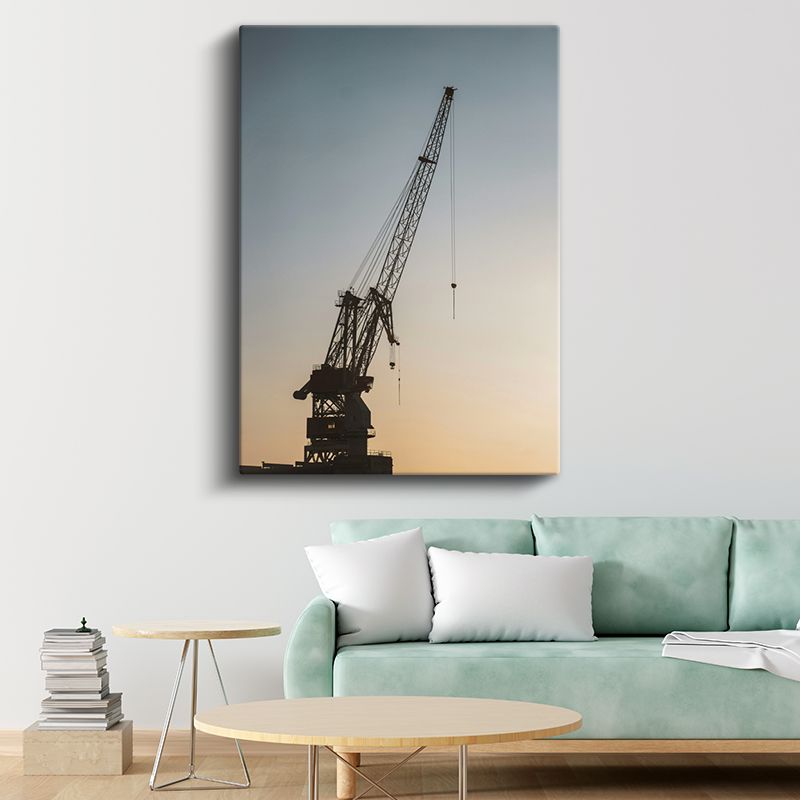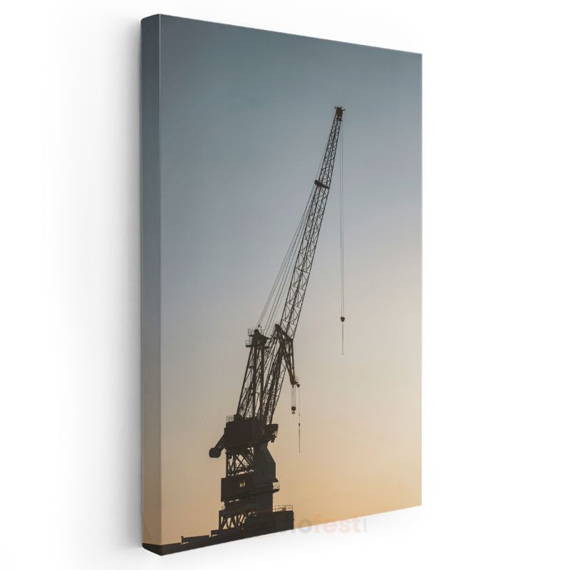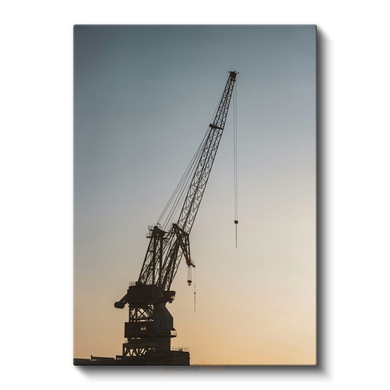 Vinç Operatörü - Gün Batımında İnşaat Kanvas Tablo