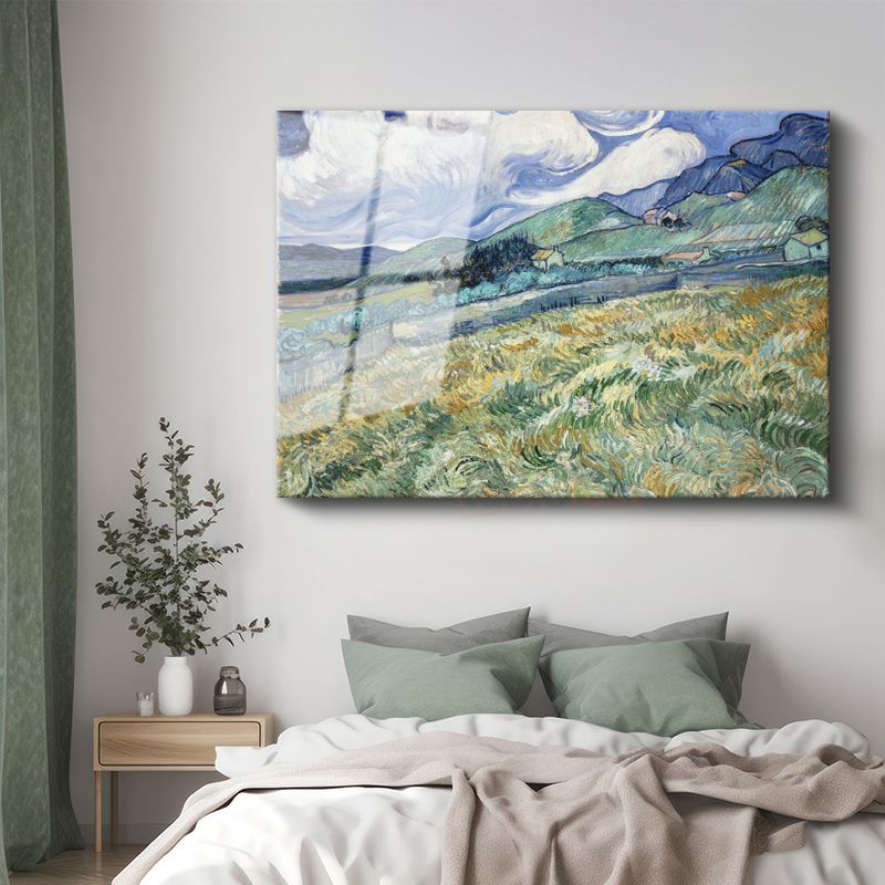 Vincent van Gogh - Buğday Tarlası ve Dağlar Cam Tablo