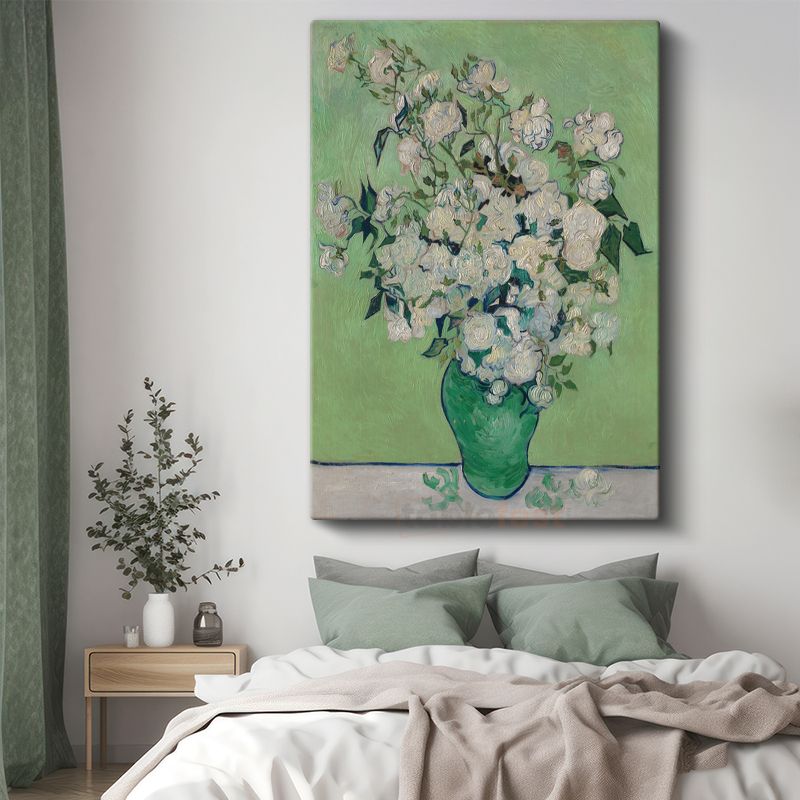 Vincent van Gogh - Vazoda Beyaz Güller Kanvas Tablo