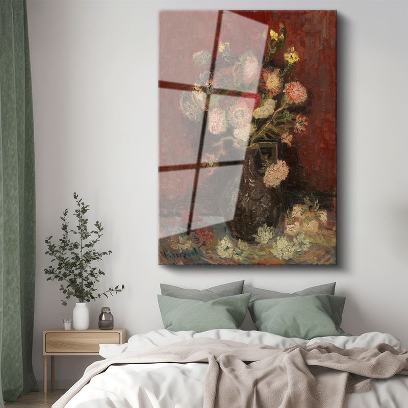 Vincent van Gogh - Vazoda Karanfiller Cam Tablo