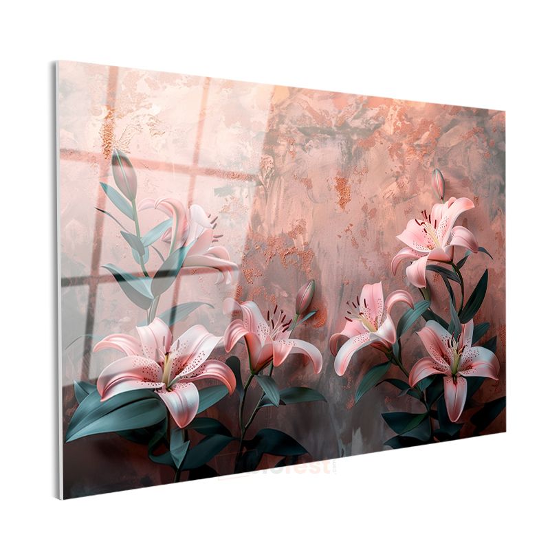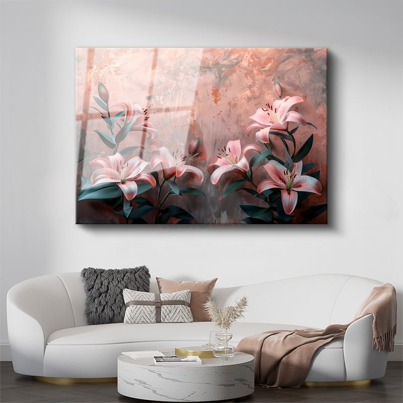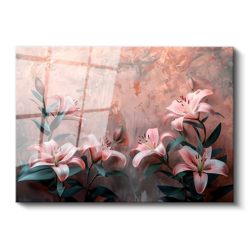 Vintage Güller - Koyu Yeşil Yapraklı Zarif Çiçekler Cam Tablo