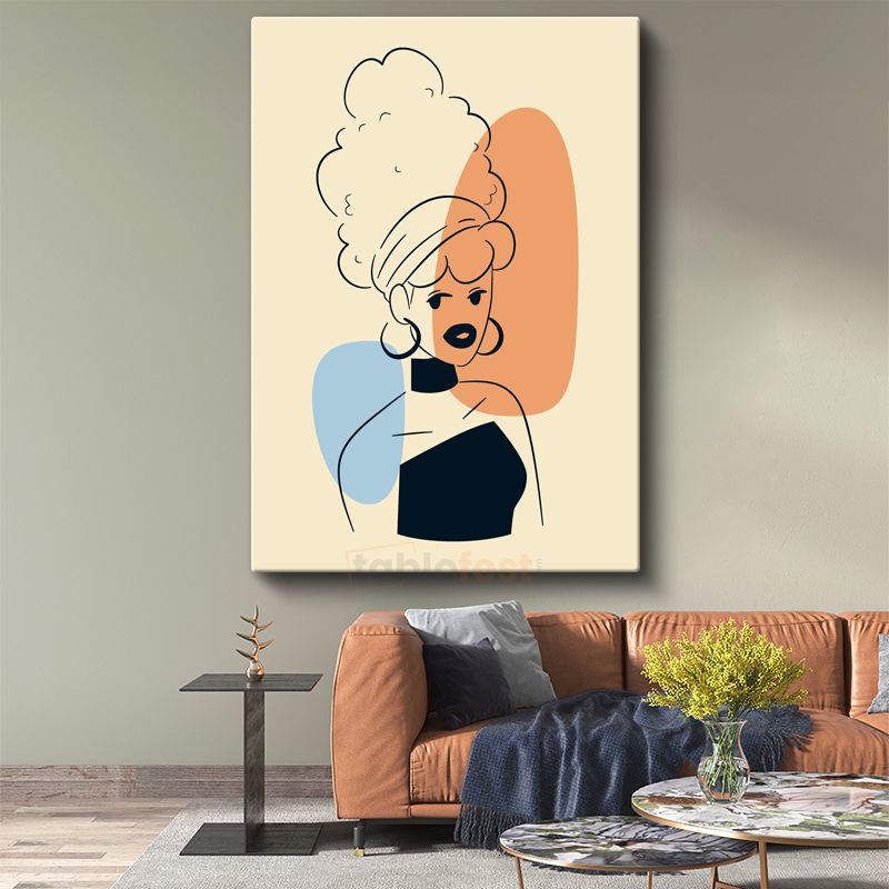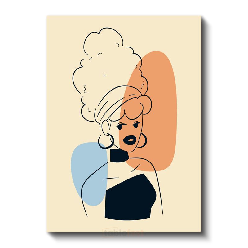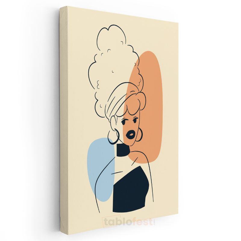 Vintage İllüstrasyon - Kontrast Renkli Topuz Saçlı Figür Kanvas Tablo