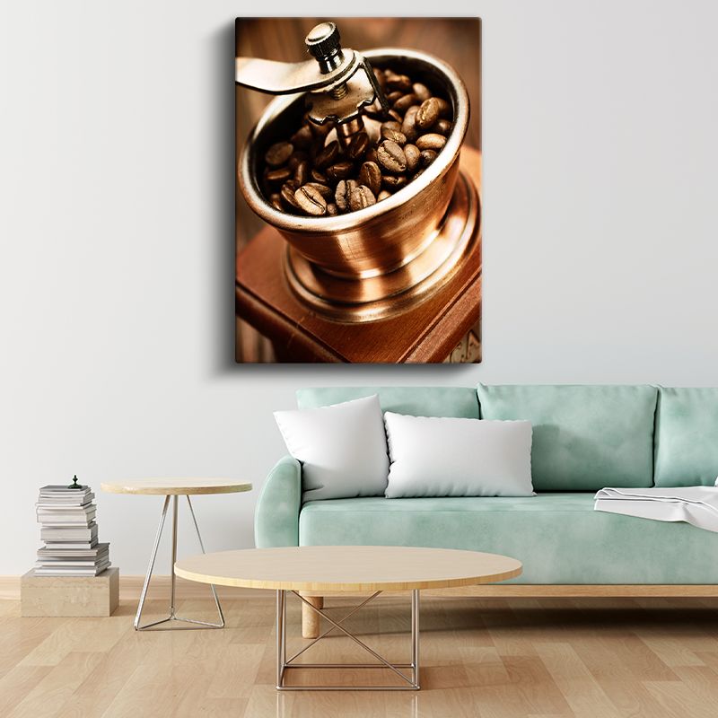Vintage Kahve Değirmeni - Çekilmeyi Bekleyen Taneler Kanvas Tablo