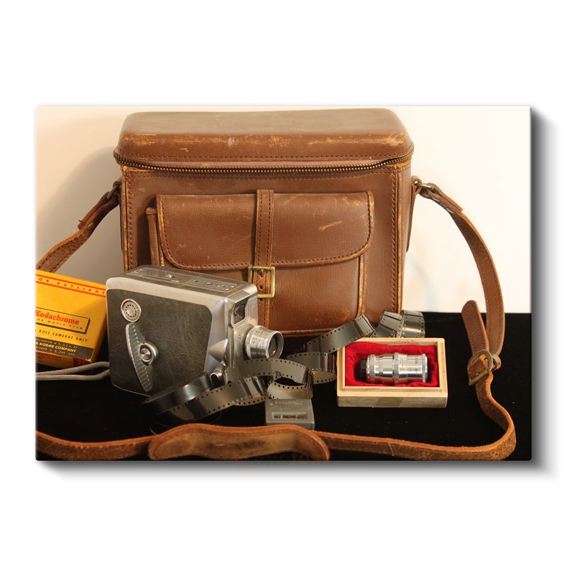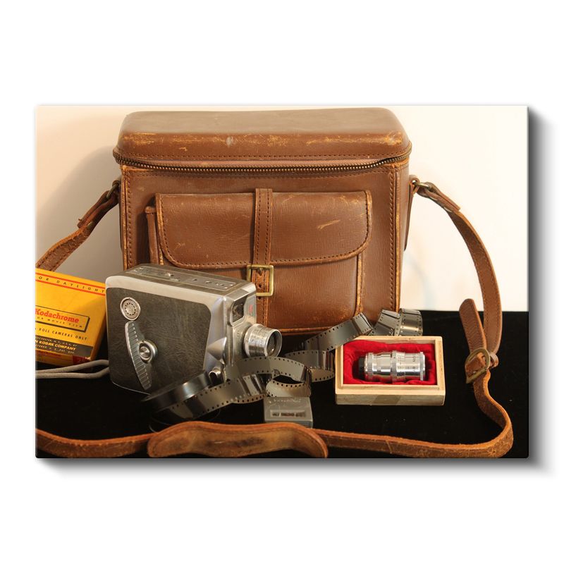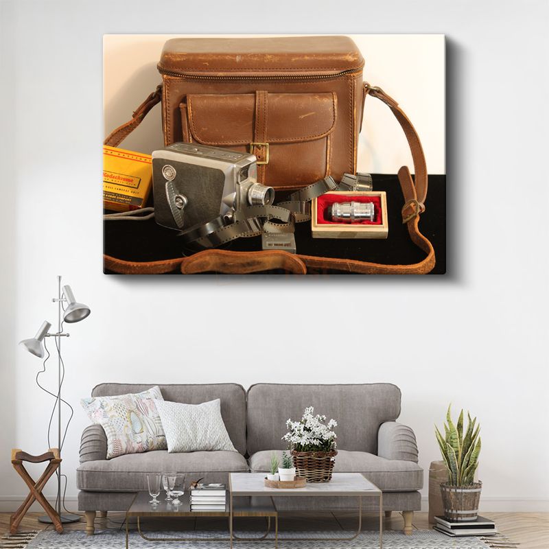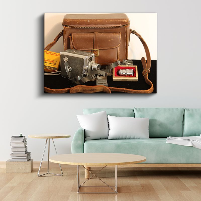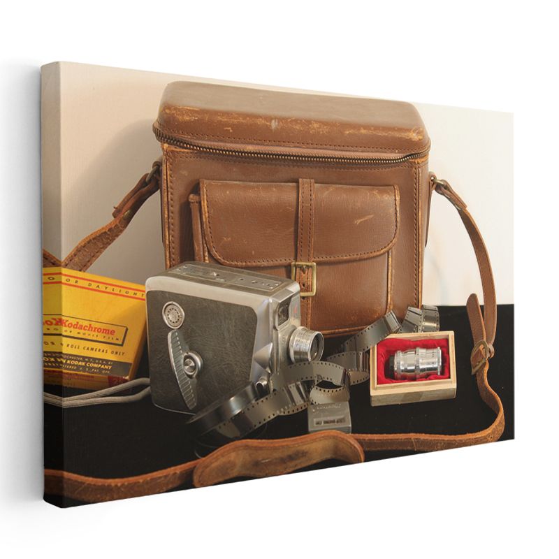 Vintage Kamera Seti - Deri Çantalı Film Ekipmanı Kanvas Tablo