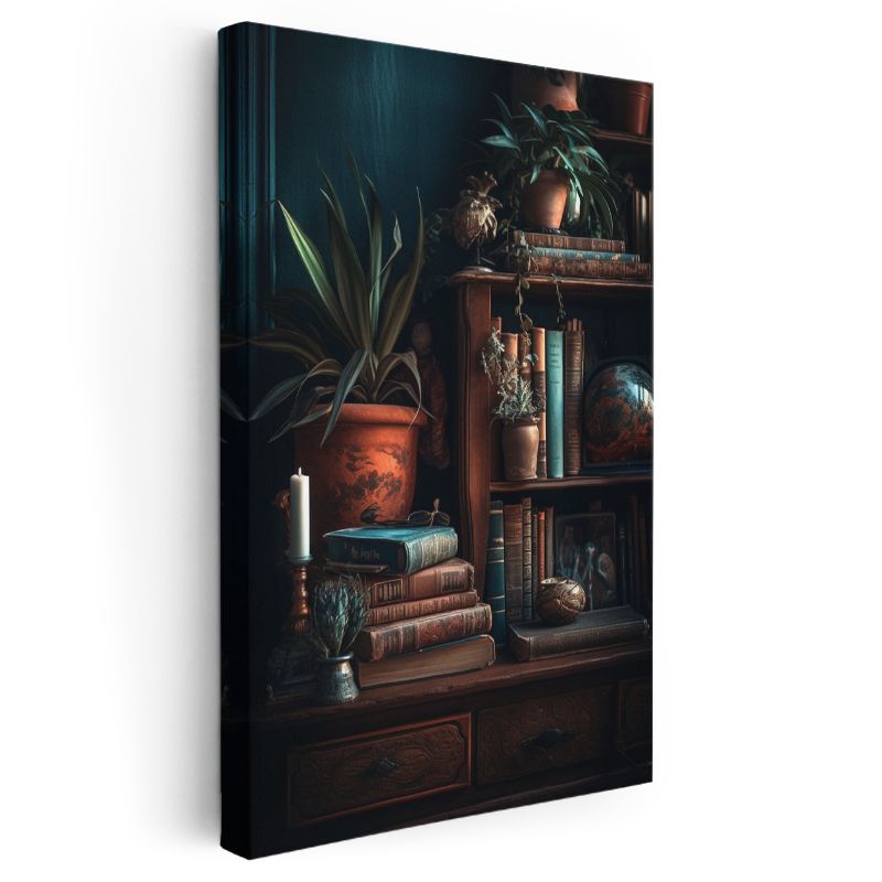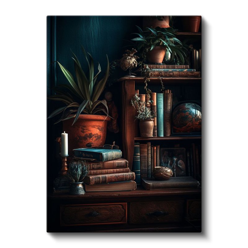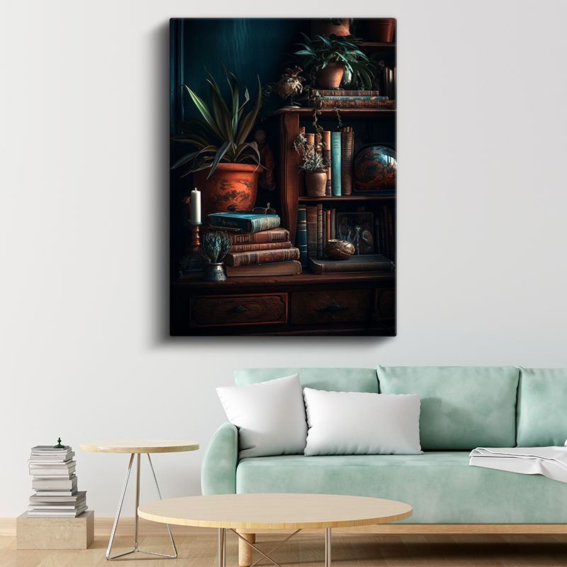 Vintage Kitaplık - Nostaljik Okuma Köşesi Kanvas Tablo
