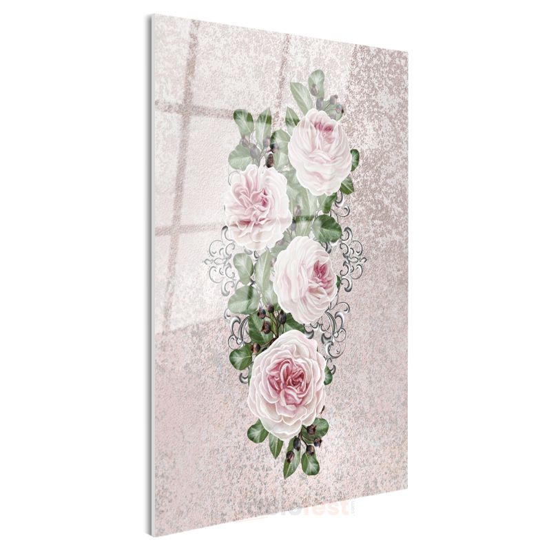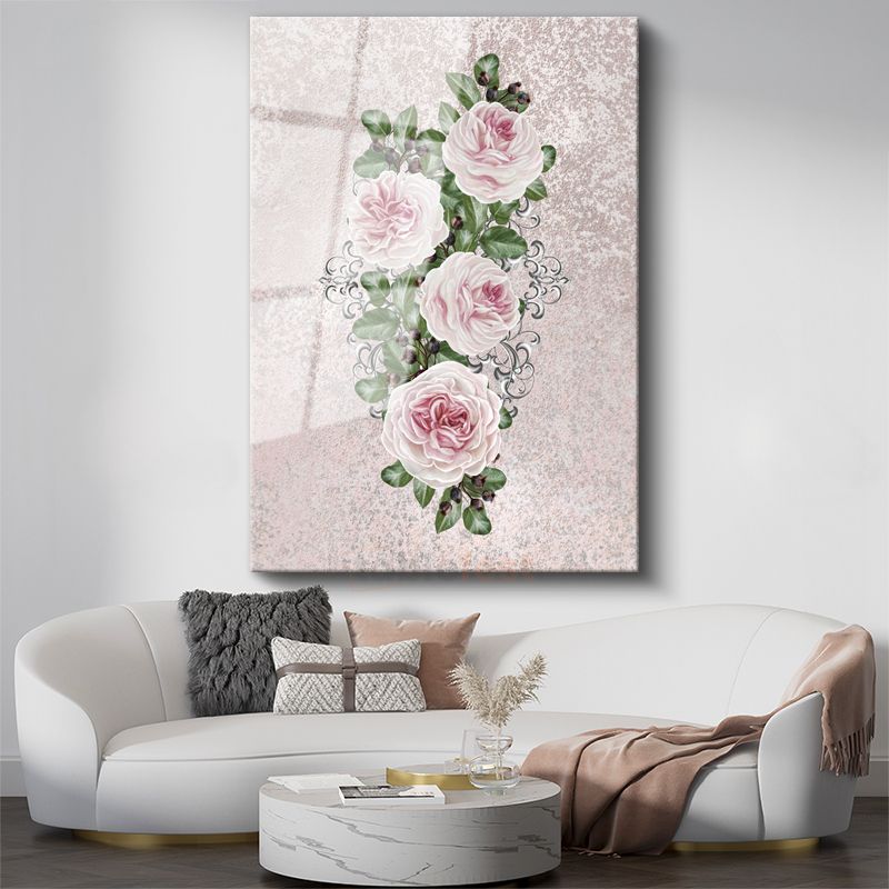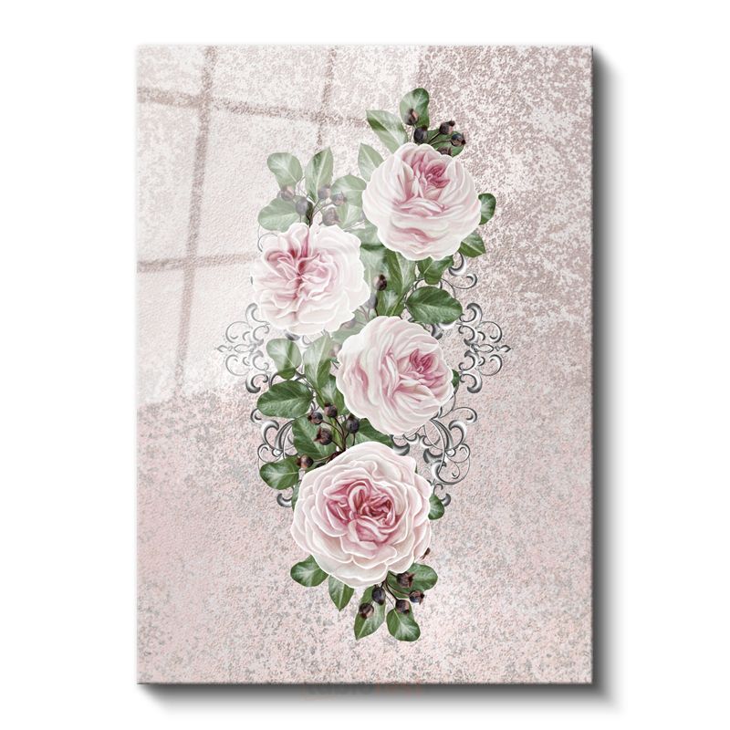 Vintage Pembe Güller - Şık Dekoratif Süslemeli Cam Tablo