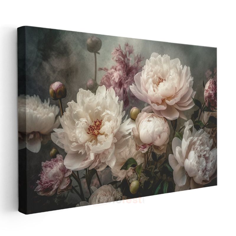 Vintage Şakayıklar - Pastel Tonlarda Romantik Buket Kanvas Tablo