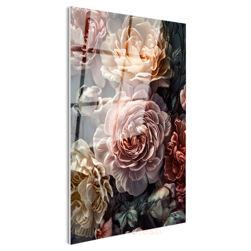 Vintage Şakayıklar - Romantik Pastel Çiçek Cam Tablo