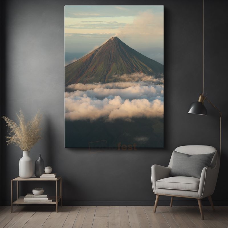 Volkan Zirvesi - Bulutların Üzerinde Yükselen Heybetli Dağ Kanvas Tablo