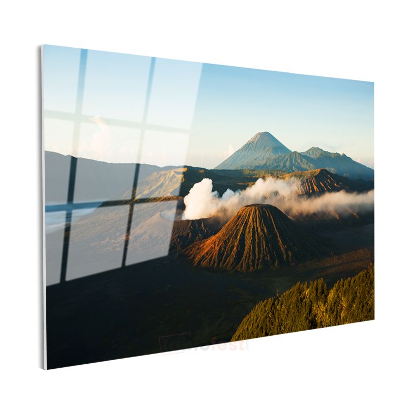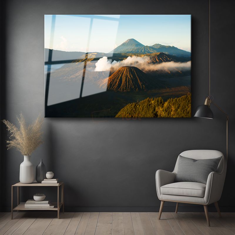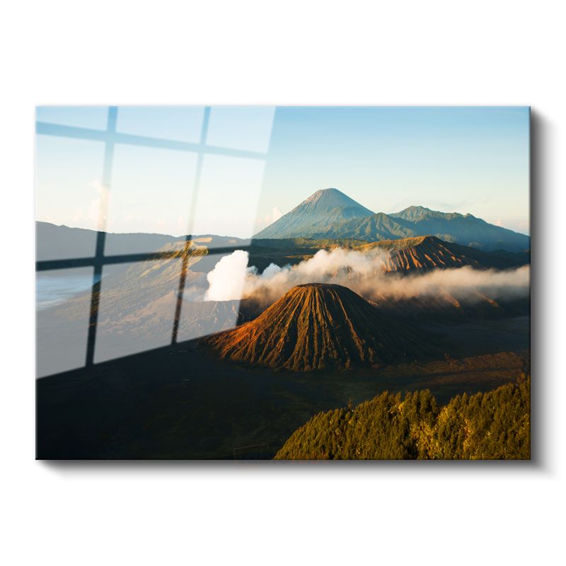 Volkanik Dağlar - Gün Doğumunda Muhteşem Krater Manzarası Cam Tablo