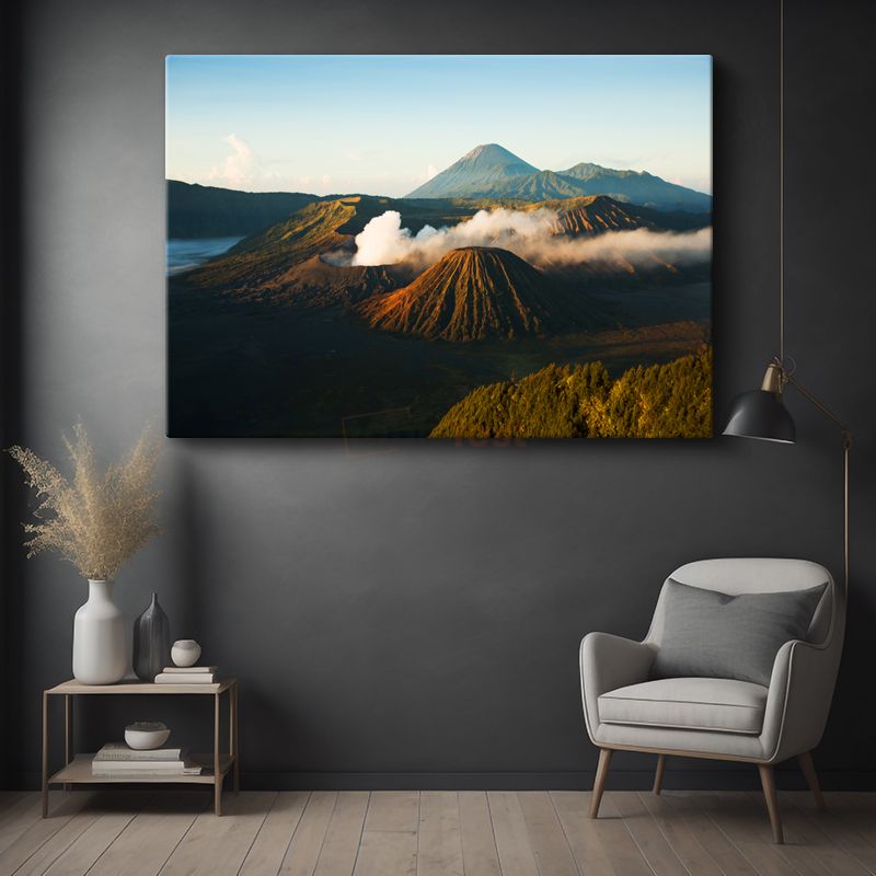 Volkanik Dağlar - Gün Doğumunda Muhteşem Krater Manzarası Kanvas Tablo