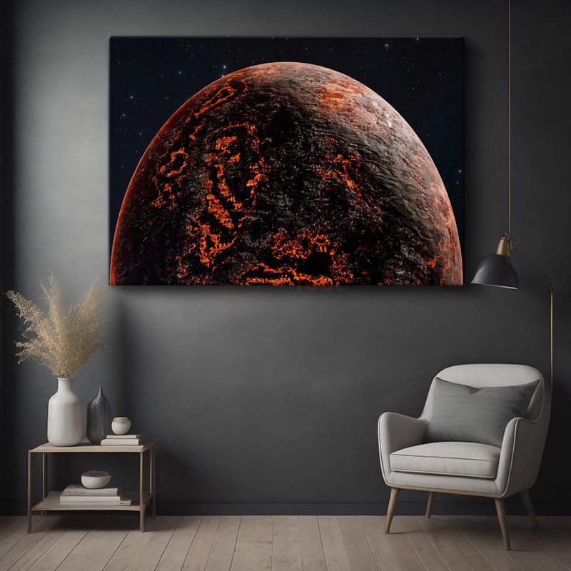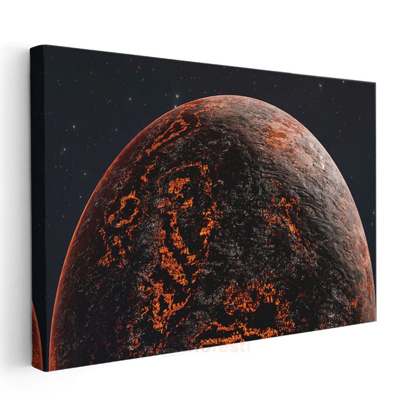 Volkanik Gezegen - Kızıl Lavların Aydınlattığı Yüzey Kanvas Tablo