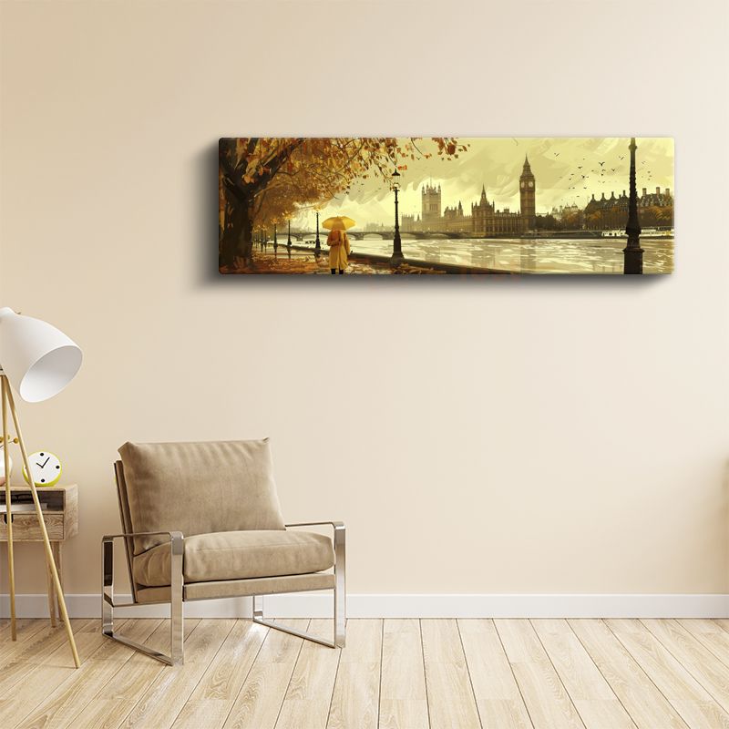 Westminster Manzarası - Sarı Şemsiyeli Sonbahar Kanvas Tablo