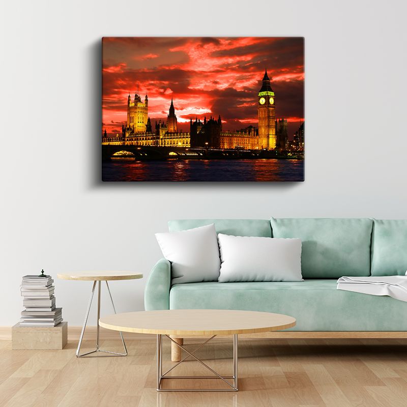 Westminster Sarayı - Alev Kızılı Gökyüzü Kanvas Tablo